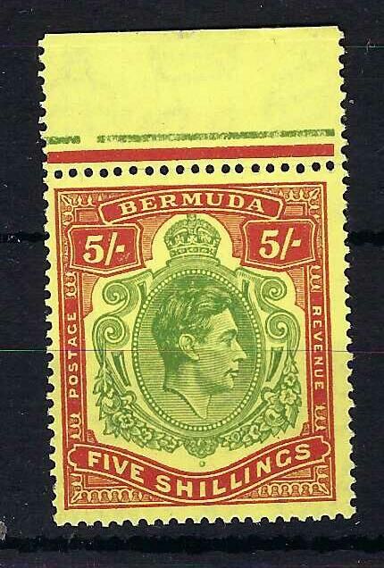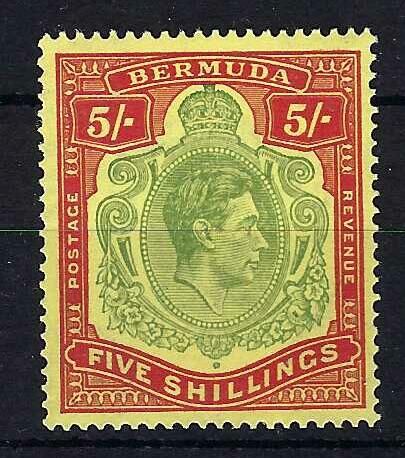 Bermuda | 118e | 5/- green & red/pale yellow | UMM | £30.00 | |||