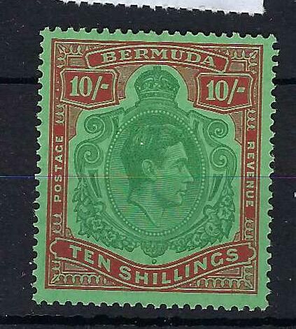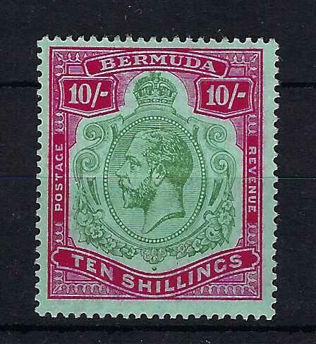 Bermuda | 54 | 10/- green & carmine/pale bluish green. | UMM | £90.00 | |||