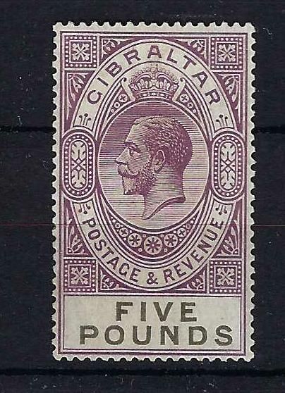 Gibraltar | 108 | £5 violet & black. Light diagonal corner crease. | LMM | £400.00 | |||
