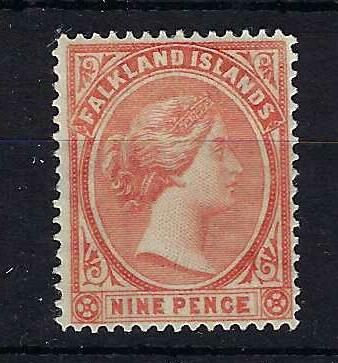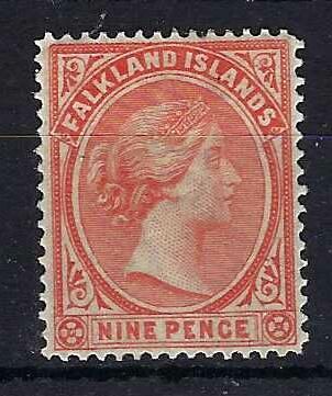 Falkland Islands | 35x | 9d pale reddish orange with Wmk reversed. | MM | £395.00 | |||