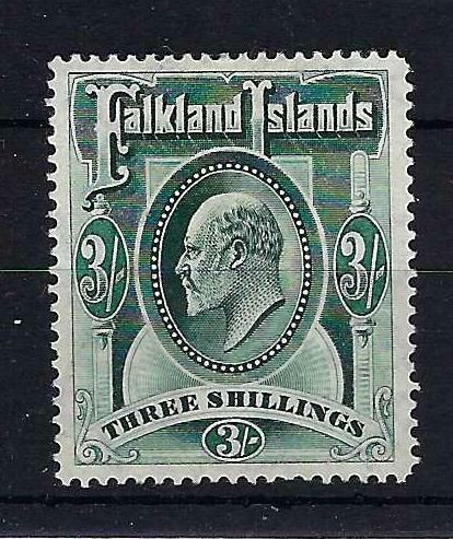 Falkland Islands | 49aw | 1904-12. 3/- green with Wmk inverted. | LMM | £2,950.00 | |||