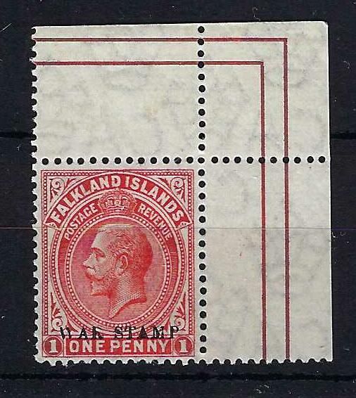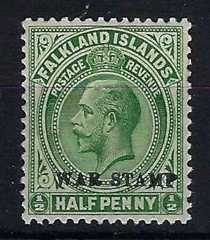 Falkland Islands | 70cx | 1918-20 War Stamp Issue. 1/2d dull yellowish green on thick greyish paper with Wmk reversed. | LMM | £395.00 | |||