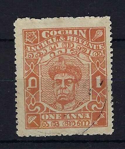 Indian Feudatory States ~ Cochin | 83 | 9p on 1a brown-orange Type 23. | FU | £25.00 | |||